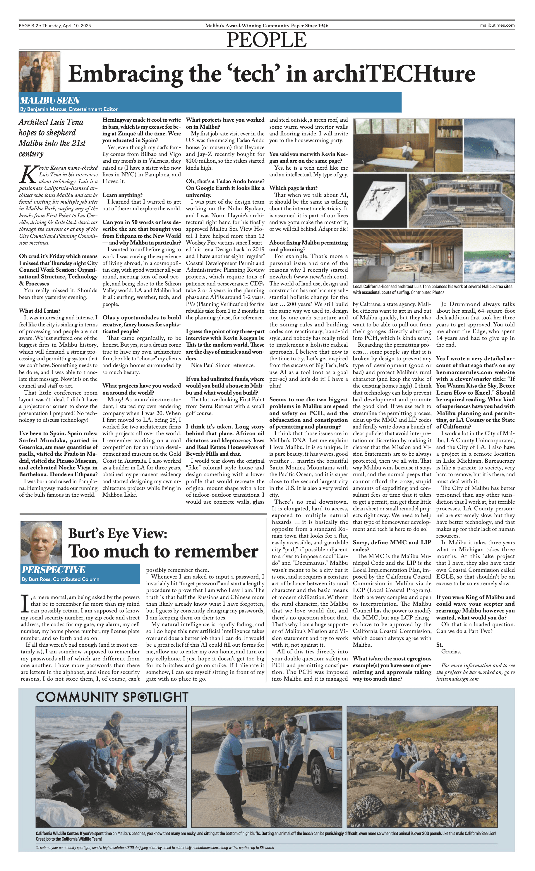 Interview featured in The Malibu Times - April 10, 2025 edition