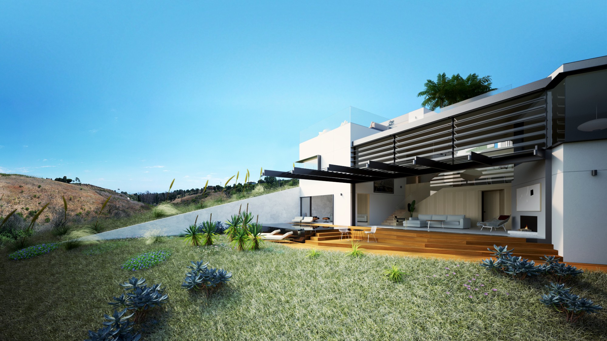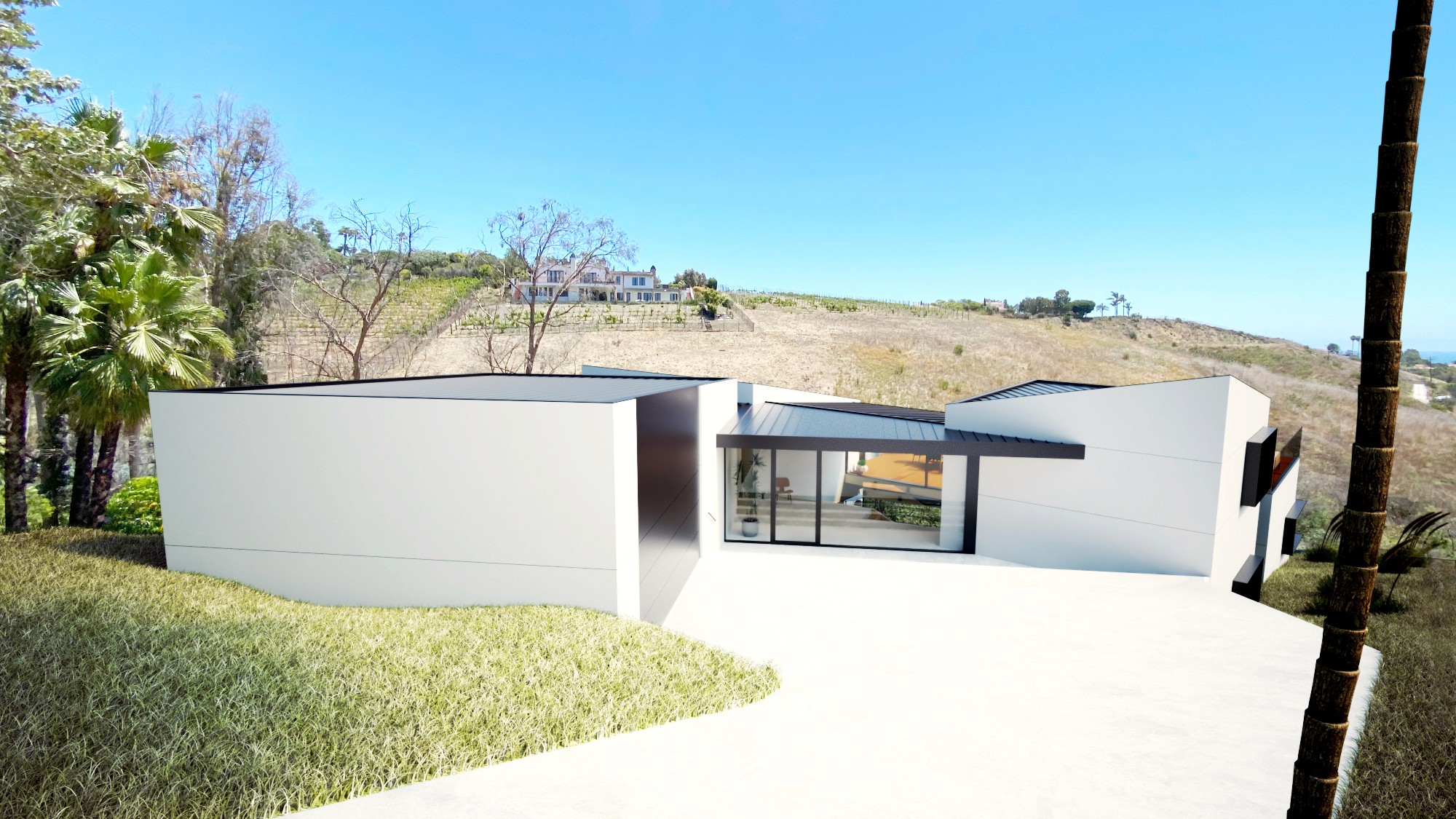Ground up fire rebuild from Woolsey Fire on a 1 acre lot near Malibu Park with ocean views.
